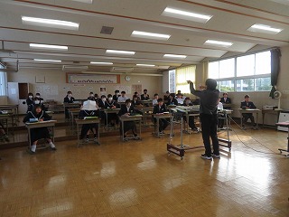 11月18日(火)の3時間目には火災避難訓練が行われました。静かに素早く避難することができました。火災に遭うことは多くはないかと思われますが、これから空気が乾燥する時期に家庭での防火対策について話を聞きました。