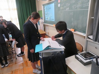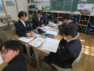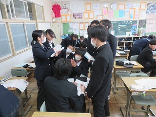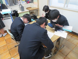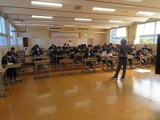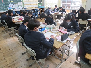 12月10日(水)の5時間目の様子です。英語や理科、数学の授業の様子です。特に3年生の数学では入試に向けて出題されそうな図形問題を相談しながら解いている姿が見られました。がんばれ、受験生!!