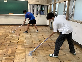 教室の掃除当番が、ワックスがけに向けて床の水拭きを行いました。そして、学級のみんなで机やいすの脚のほこり取りをしました。教室備品の机のほこりも綺麗に取ってくれました。当日は、環境美化委員が協力し、丁寧にワックスがけを行いました。