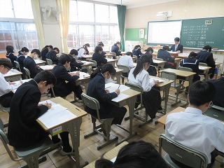 11月12日(水)の2時間目の様子です。テストを控え、自習の場面や先生に質問している場面を多くみかけました。