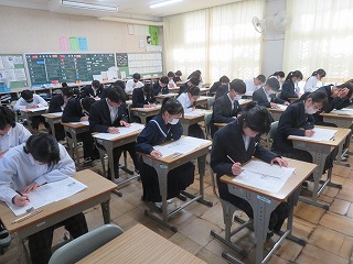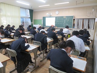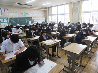 11月14日(金)は、期末テスト1日目でした。これまで学習した内容の定着を図ります。成果が発揮できるとよいですね。1年生の様子です。