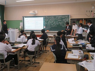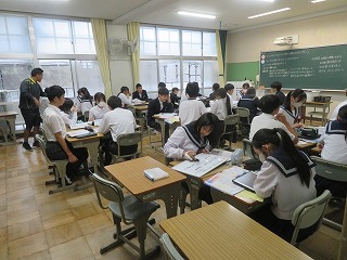 10月28日(火)の3時間目の様子です。数学の授業に長時間いたため、時間がなく、2学級の様子です。