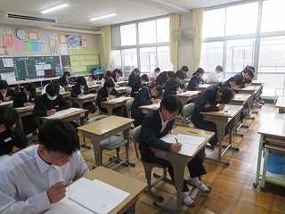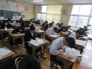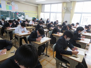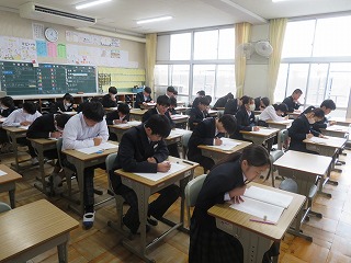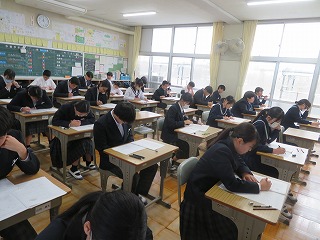 10月29日(水)には、3年生で実力テストを行いました。入試に向けて学習内容を確認する大切な機会となります。みんな真剣に取り組んでいました。