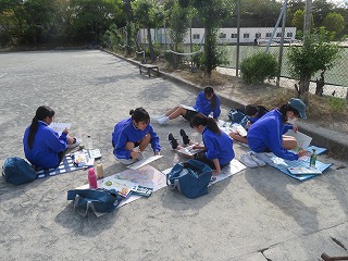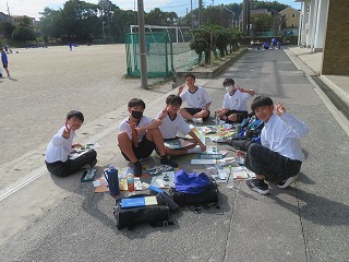10月29日(水)には、1年生で写生会を行いました。心地よい日差しのもとで自分で決めた場所とアングルで描いていました。完成が楽しみです。